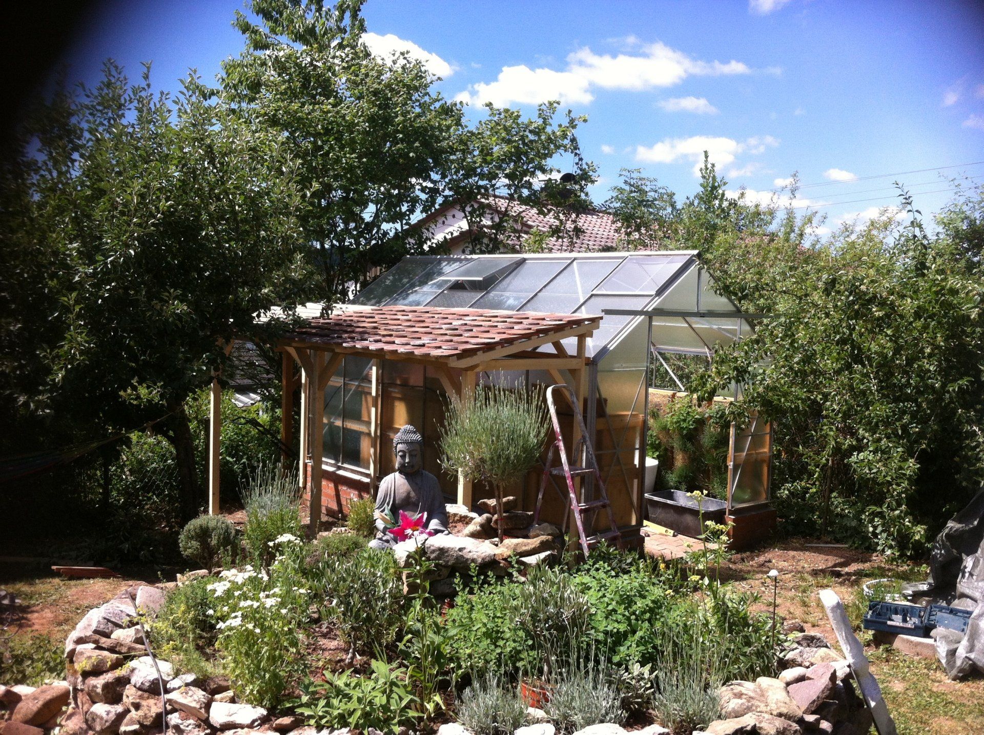 In unserem Sinnesgarten ist ein Kräutergewächshaus vorhanden. In diesem steht eine freistehende Badewanne .Diese kann in unterschiedlichen Varianten genutzt werden.