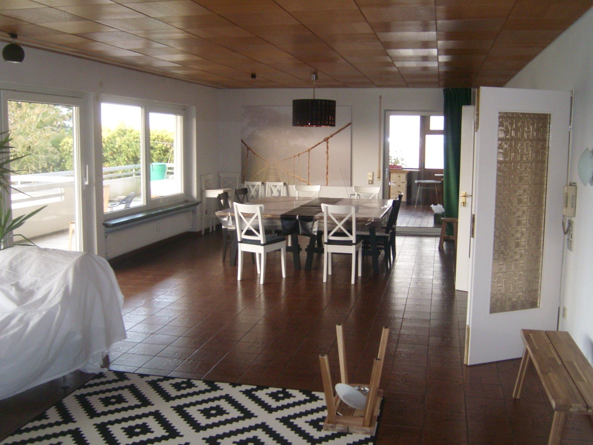 In diesem Objekt besteht eine Wohnung im EG mit 240qm,einem großen Balkon,einer Doppelgarage und einem Wintergarten,der als Kreativraum genutzt wird.Sämtliche Räumlichkeiten sind jetzt schon weitgehend barrierefrei.
