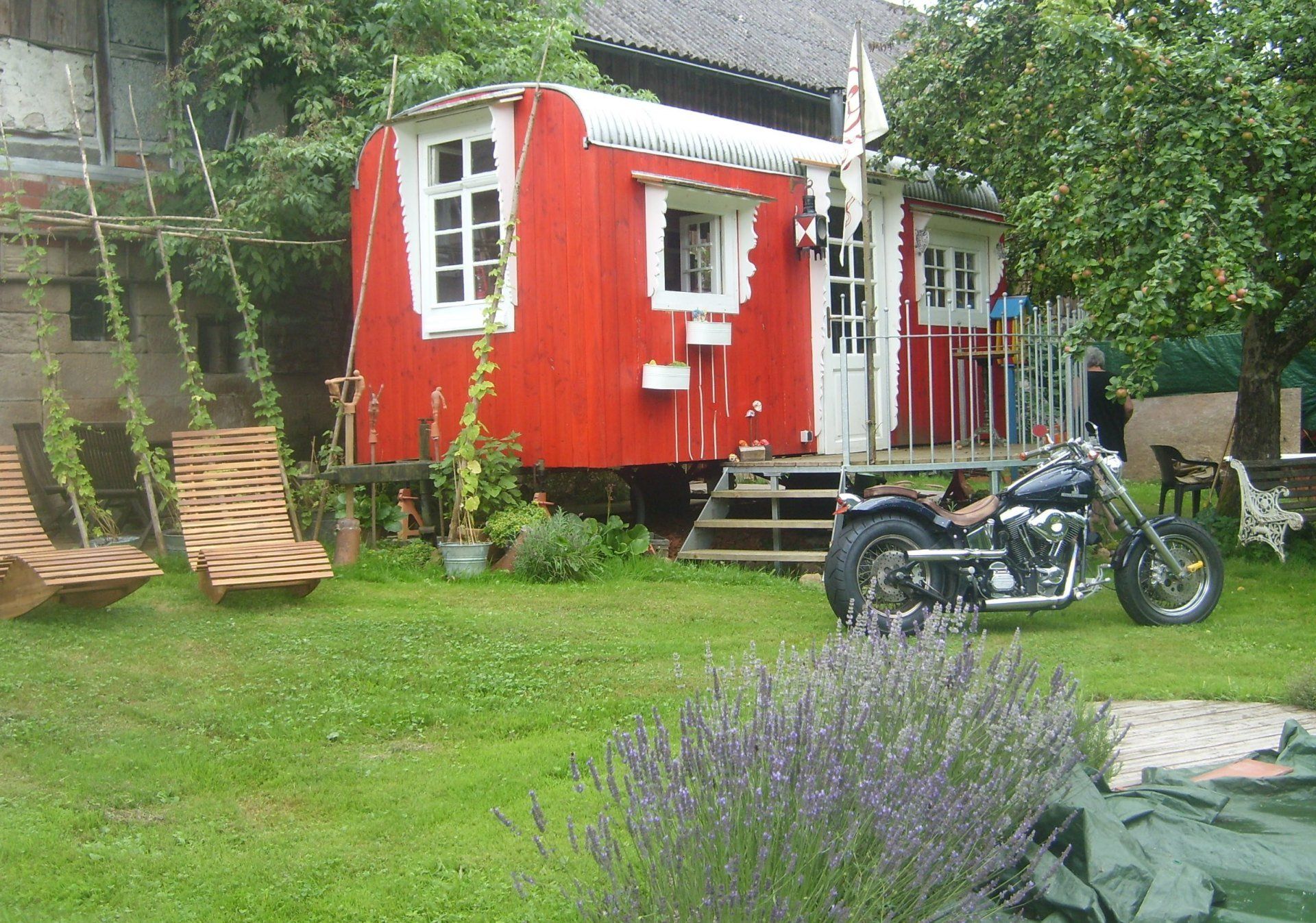 Es besteht eine Scheune und ein großes Wiesengrundstück.Das ganze Anwesen ist in die bestehende Natur eingebunden und wird vom Siegelsbach begrenzt.Der ausgebaute Bauwagen kann an Feriengäste vermietet werden.